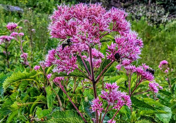 Bee magnet. Joe Pye weed in an overgrown meadow, Woodtick Trail, Wolcott, Connecticut. August 8, 2020, 5:39 PM.