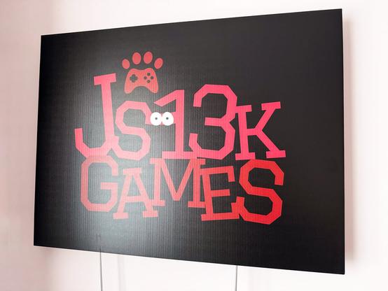 Did you know Sticker Mule offers printing (on) rigid yard signs? I've decided to check how @js13kGames 2025 design would look like on one and it turned out great!