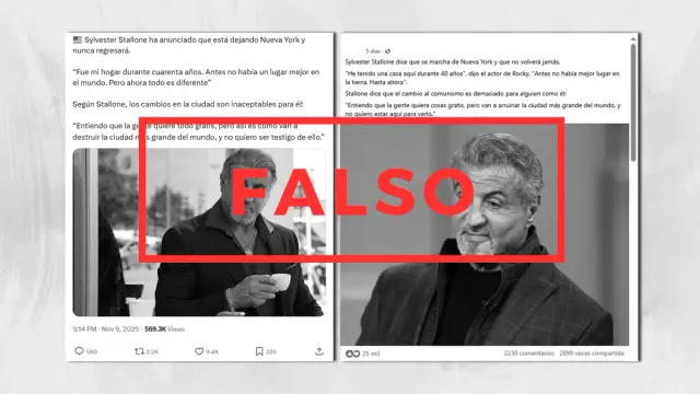Sylvester Stallone no anunció que dejará Nueva York tras la elección de Zohran Mamdani como alcalde | vía #MalaEspinaCheck