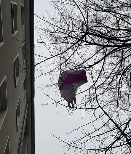 Zum #FensterFreitag eine Beziehung zwischen #Fenster, #Baum und #Tüte. Schwer zu sagen, wie genau alles zusammenhängt und warum. Ist es zusätzliche Lagerfläche? Schnauze voll von Tüte? Ein Geheimversteck? Rätselhafte Geschichten aus der Stadt einmal mehr…