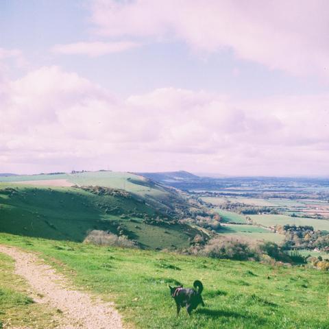 There I was, trying to take a purdy photo of devil's dyke, when Fern sneaks in and photobombs me...