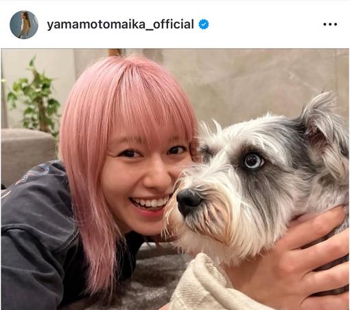 俳優の 山本舞香 (27)が21日、自身のインスタグラムを更新。夫でロックバンド・ MY FIRST STORY のボーカル・ Hiro (31)の実の兄である ONE OK ROCK のボーカル・ Taka (37)の愛犬と戯れる“自然体”な2ショットを披露した。 Takaの愛犬の名は「SUSHI」。山本はSUSHIに顔を寄せたり、一緒に寝っ転がってじゃれ合う2ショットなどを複数枚投稿し、「女同士仲良くしような」とメッセージをつづった。 ファンからは「どっちもかわいすぎる」「ほっこり」「まいかちゃんの笑顔最高」「幸せな時間だよね!」「良い目をしてますなぁ」「ピンク色の髪が可愛いですね」など、さまざまな声が寄せられている。