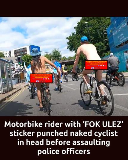 **Motorbike rider with ‘FOK ULEZ’ sticker punched naked cyclist in head before assaulting police officers**