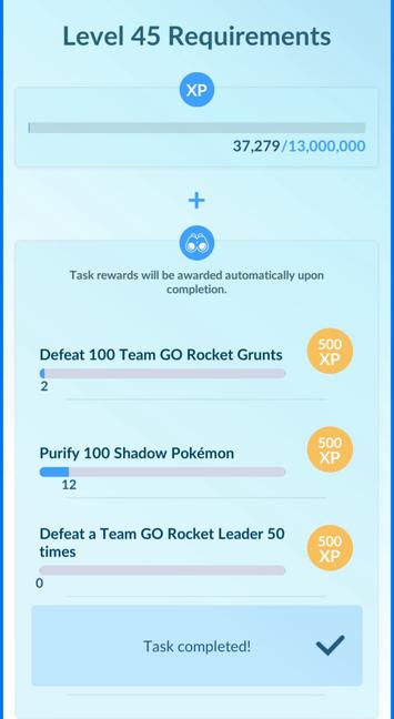 Not long after my last toot, I reached lvl 44 yesterday and, funnily enough, I now have to grind out a gajillion Team Rocket GO battles if I want to proceed to lvl 45. Heh…