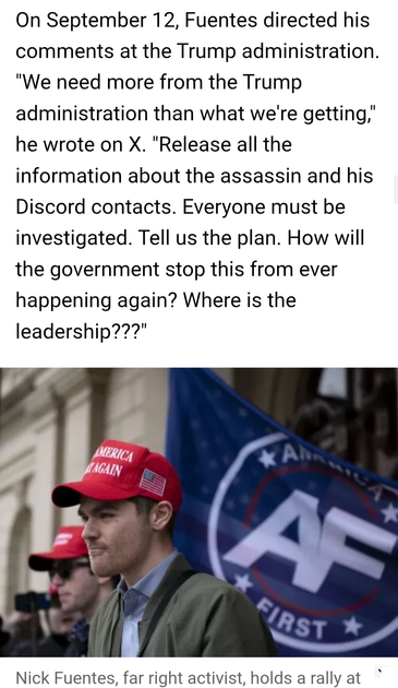 It's no secret #NickFuentes had been removed from both C-Pac and #TurningPointUSA events and accused Charlie Kirk of being a tool of "the Jews"... So I guess we better blame trans people for Kirk's death?