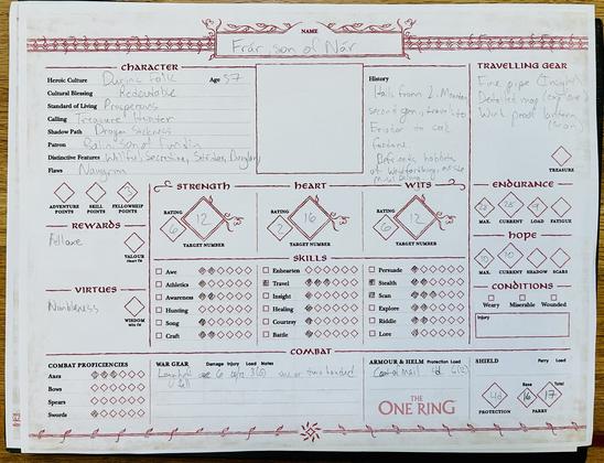 #charactersheets #theonering #tor #middleearth #ttrpg #freebie #handcrafted #noai