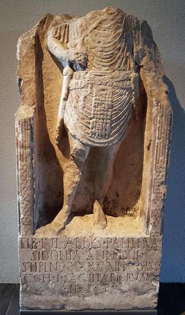 Ik herinner mijn verbazing toen ik dit las in een van de folianten van het Corpus Inscriptionum Latinarum. Panter (het was gisteren Dierendag) is namelijk, volgens een rabbijns roddeltje, de naam die de vader van Jezus zou hebben gehad. En werkelijk alles klopt. De soldaat in Bingen kwam uit de regio, namelijk Sidon; hij leefde ten tijde van keizer Tiberius; hij behoorde bij een onderdeel dat óf in het jaar 6 na Chr. óf in het jaar 9 is overgeplaatst naar de Rijn. Het is niet helemáál ondenkbaar dat dit de man is die aanleiding is geweest tot het rabbijnse roddelpraatje. Dat maakt het echter nog niet waarschijnlijk, want zo ongebruikelijk is de bijnaam Panter nou ook weer niet.