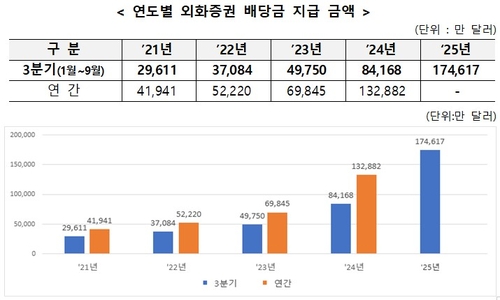 Dividends paid to South Korean retail investors from overseas stocks more than doubled to $1.75 billion through September, with U.S.-listed ETFs—led by a Coinbase-based fund—dominating payouts.