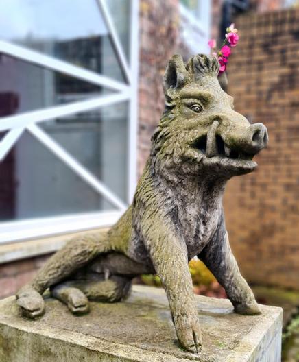 I came across this handsome fellow while visiting the Hidden Lane in Glasgow yesterday. It's a copy of a 2nd Century BC Roman statue know known as the Uffizi Boar as the original is housed in the Uffizi Gallery in Florence. The flowers behind his left ear is pure Glasgow!
