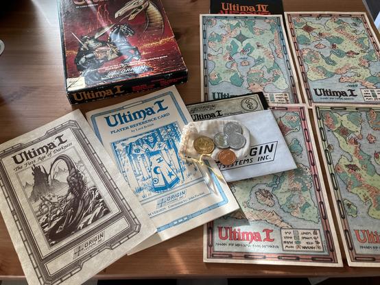 these are the physical artifacts for the 1987 Ultima I remake. not very many people have seen this version, as it has always been on the pricey side with collectors.