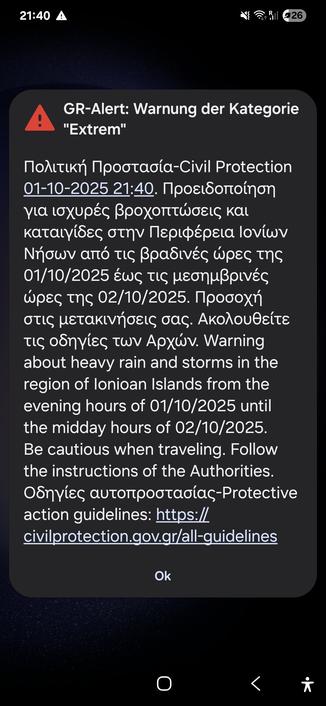Die Warnmeldungen via #CellBroadcast in Griechenland funktionieren!
