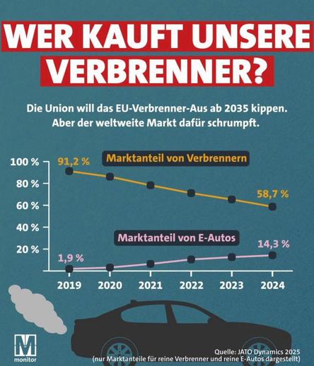 Etwa im Sinne einer Kosten-/Nutzen-Rechnung fordern die Ministerpräsidenten der deutschen Bundesländer, "die Zukunft des Verbrennungsmotors durch Regeln für »klimafreundliche und CO₂-arme Kraftstoffe wie auch Wasserstoff« langfristig zu sichern." https://www.spiegel.de/politik/verbrenner-aus-ab-2035-ministerpraesidenten-wollen-eu-regelung-aufweichen-a-5cc3b768-5ee1-4050-a797-81e850ff2178