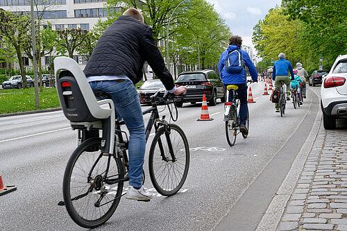 Wir fordern vom Senat als Sofortmaßnahme eine Pop-Up-Bikelane An der Verbindungsbahn einzurichten, um so mehr Platz und Sicherheit für den Radverkehr zu schaffen.
