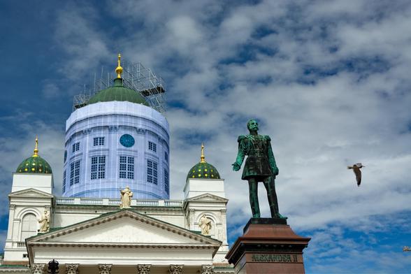 The Lutheran Cathedral and the statue of Alexander II — timeless symbols of the city that blend Finnish calm with Nordic grandeur. Even the seagull joined the photo shoot!