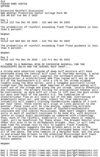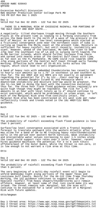 #WBC issues Excessive Rainfall Discussion (QPF) at Dec 2, 10:40 AM EST ...THERE IS A MARGINAL RISK OF EXCESSIVE RAINFALL FOR THE MISSISSIPPI DELTA AND THE CENTRAL GULF COAST... https://mesonet.agron.iastate.edu/p.php?pid=202512021540-KWBC-FOUS30-QPFERD