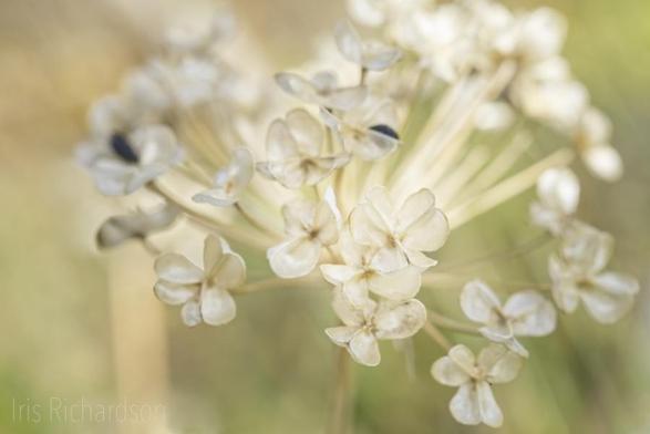 Now that the garlic chive seeds are gone, the florets create a pastel macro.