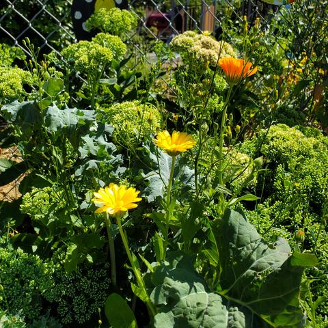 I really love that they planted #borage together with #calendula & #feverfew #plants đ So many pollinators were flying around this small area & feeding on the flowers.