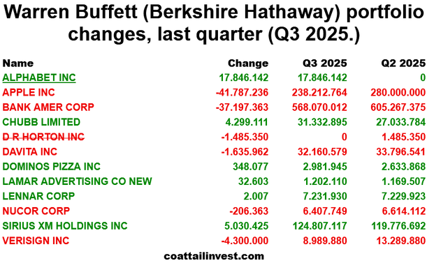 #BerkshireHathaway #WarrenBuffett Q3 2025 changes.