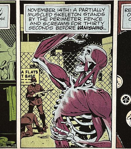 Happy Partially Muscled Skeleton Stands By The Perimeter Fence And Screams For Thirty Seconds Before *Vanishing* Day, for all who celebrate.