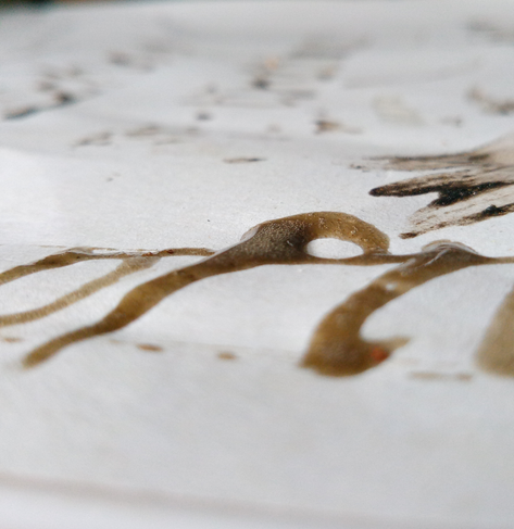 In die #Tinte habe ich etwas Kirschgummi hineingerieben. Dadurch sollte sie etwas sämiger werden, nun ist sie aber zu breiig geworden. Die Pigmente sind auch ziemlich schwach.