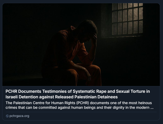 Il @pchrgaza denuncia #torture sessuali e stupri sistematici contro detenuti palestinesi: crimini di genocidio documentati.