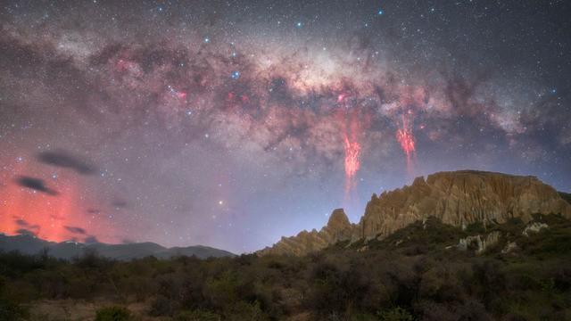 3 Fotografen haben auf der Südinsel eines der seltensten #Lichtphänomene eingefangen – samt #Polarlicht & #Milchstraße. Die Roten Kobolde geben Forschenden bis heute Rätsel auf.