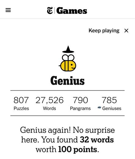 🟩🟨⬛⬛🟨 34 words left.