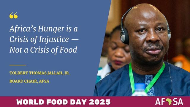 Today, on World Food Day 2025, the Alliance for Food Sovereignty in Africa (AFSA) stands in unified voice with farmers, communities, Indigenous peoples, civil society, and allies across Africa to declare one urgent truth. The people of Africa are not dying because of a lack of food. They are dying because of lack of justice. Africa’s hunger is the direct result of disempowerment, land dispossession, climate breakdown, and policy decisions that serve markets over people.