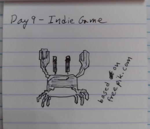 Xenotober day 9: indie game. Two guys fight giant crabs and discuss story versus gameplay.