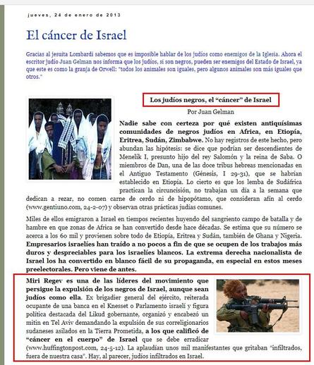 Actualmente los mismos judeonazis del Likud escupen y vomitan sobre los judíos de raza negra de origen africano, y hacen lobby en la Knesset para desterrar a todos los negros de Israel aunque sean judíos como ellos.