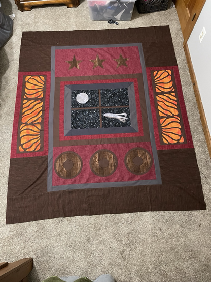 I made progress building The Orville New Horizon tapestry quilt. This is going to be lovely after I add some handquilting. I expect this to take three months at least to handquilt. I’m going to use off white thread so that the handquilting pops from the quilt. I will be adding some bugs called Luminites to the four corners. #quilting#handquilting#applique#TheOrville#TheOrvilleNewHorizon