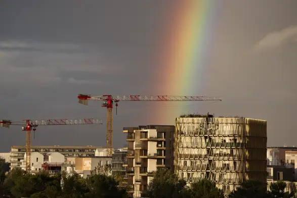 Arc en ciel et montgolfière ce matin à Colmar.