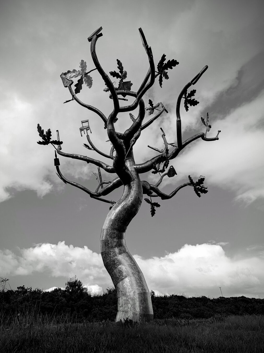 #Art in London, at #GranarySquare near King's Cross, photographed in January 2016. Hungarian design studio #HelloWood created this #sculpture in collaboration with visual artist group Creatmosphere. The 11-metre #artInstallation, titled "Let it snow", aimed to highlight the impact of climate change. After the exhibition, some of the 365 #sledges used were donated to schools. Similar #ChristmasTree installations were built in Budapest and Manchester, with materials later donated or repurposed into objects like benches.