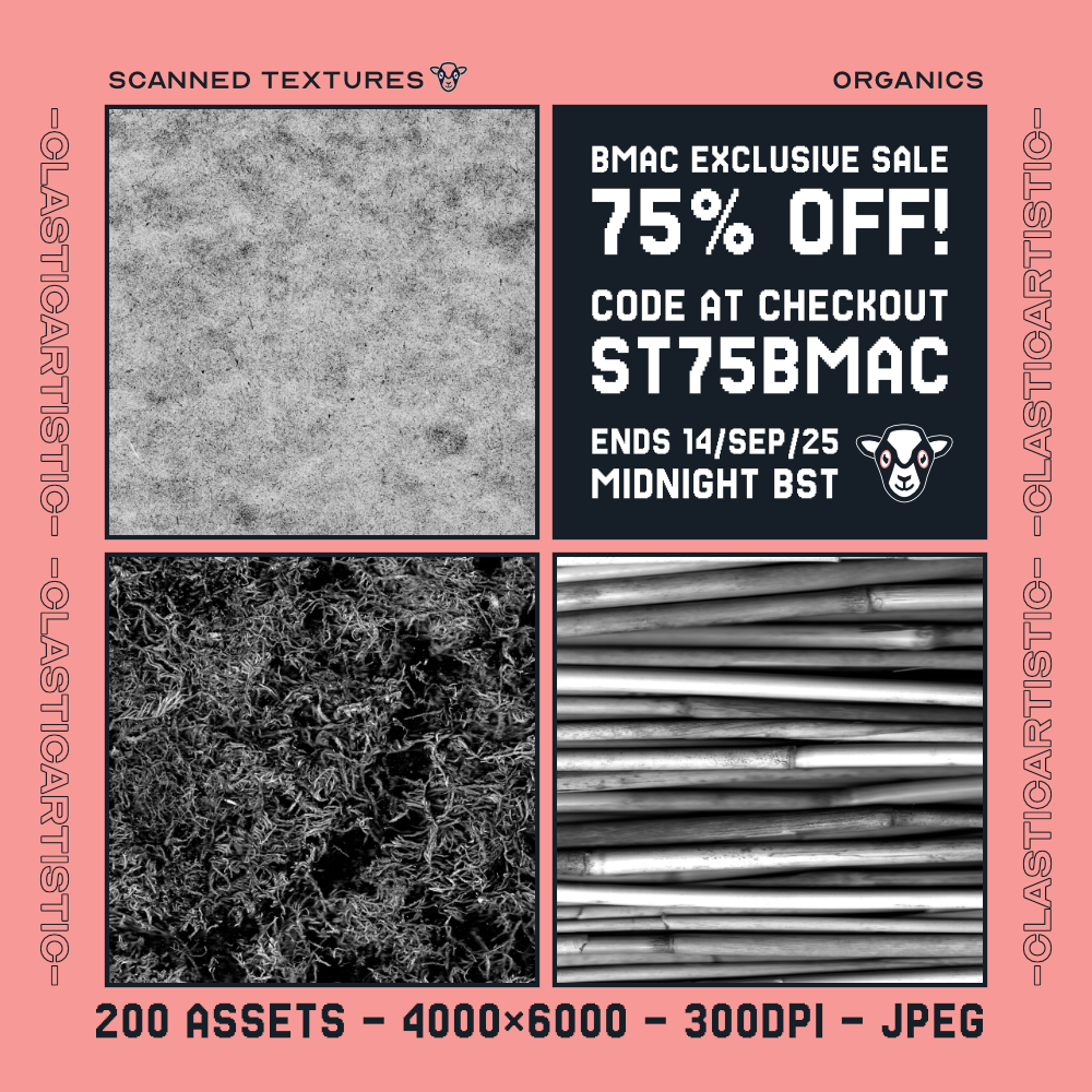 Exclusive 75% off sale on Buy Me A Coffee for Scanned Texture packs. Ends 14 Sep 2025 Midnight BST.