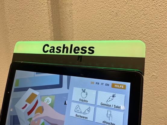 Wobei dies nicht mehr ganz stimmt: Stattdessen sind diese Kassen jetzt kurz und knackig beschriftet mit „cashless“. Was natürlich Fragen aufwirft: Weshalb plötzlich Englisch? Was war an der anderen Bezeichnung nicht gut? Ist es wohl so, weil viele Leute mit TWINT, Apple- oder Google-Pay (mit Smartphone oder gar Uhr) – also gar nicht mit Karte – bezahlen? Oder um die vielen (?!) ausländischen Kunden anzusprechen?