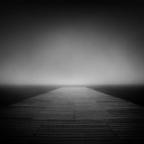 Black-and-white photograph Pool Plank, Balaruc-Les-Bains, France. August 2006. Ref-1027 by Denis Olivier. Fine-art print, original signed limited editions, reproductions, optional frame available for purchase at sizes from 13x13 cm to 70x70 cm (5.1x5.1