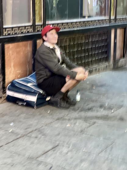 Home que espera assegut. Vora les Rambles de #BCN. Divendres, 9 de desembre. #streetphotography