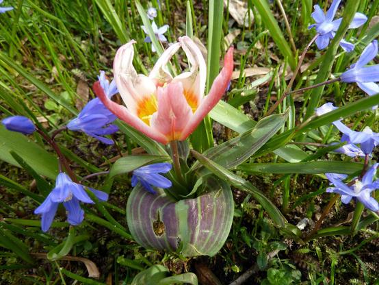 Daffodil togetherness in the midst of squills (Scilla).