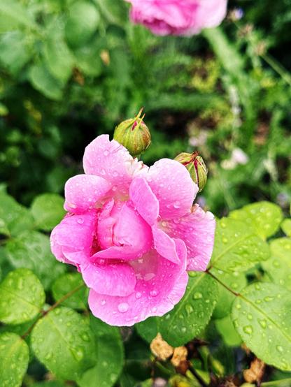 Frisch vom Sommerregen berührt: Die Rose entfaltet ihre ganze Schönheit im Spiel von Licht, Farbe und Tropfen - ein stiller Moment voller Poesie
