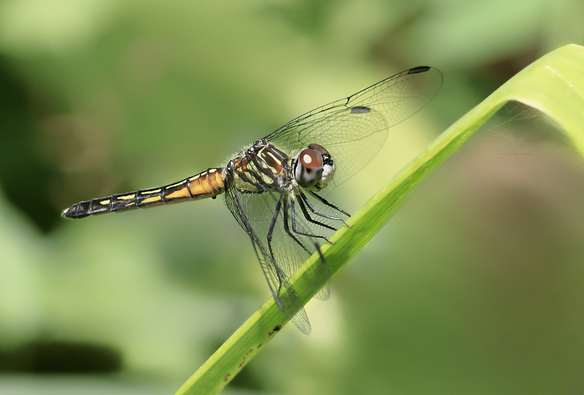 Blue Dasher dragonfly resting on a blade of grass. Descanso Gardens, La Canada Flintridge, California, USA. June, 2024. #descansogardens #bluedasher #dragonfly #insect #insectphotography #nature #naturephotography #amateurphotography #photography #omsystem #mzuiko40150pro