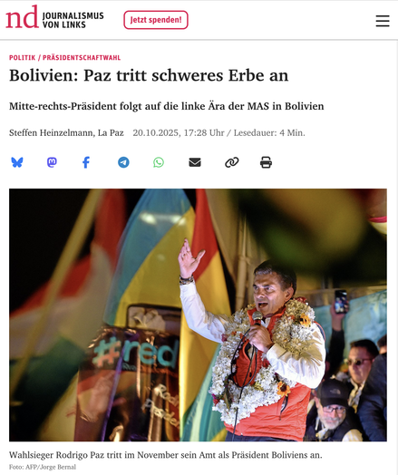 In Bolivien gehen zwei Jahrzehnte linker Regierungen zu Ende: Der Christdemokrat Rodrigo Paz hat die Stichwahl um das Präsidentenamt gewonnen. Jetzt steht er vor der Aufgabe, Inflation, Armut und das Haushaltsloch zu überwinden.
