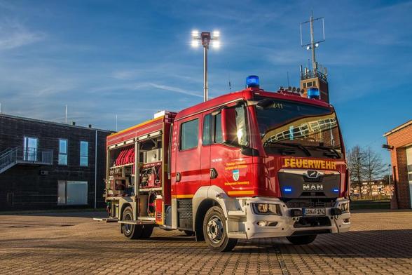 Symbolische Schlüsselübergabe für Mittleres Löschfahrzeug (MLF): "Maßgeschneidert für enge Gassen"