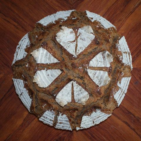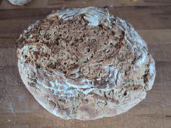 I brought some special Swiss flour back home from my holiday. "Ruchmehl" is not whole grain, but a much richer wheat flour. The sourdough rose perfectly!