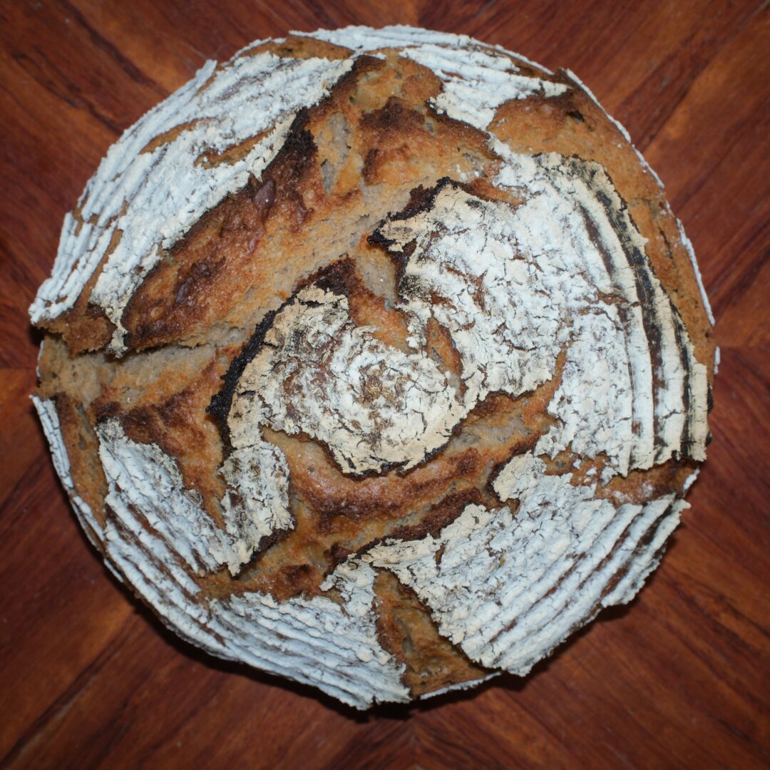 I brought some special Swiss flour back home from my holiday. "Ruchmehl" is not whole grain, but a much richer wheat flour. The sourdough rose perfectly!