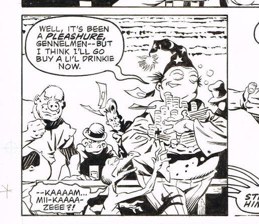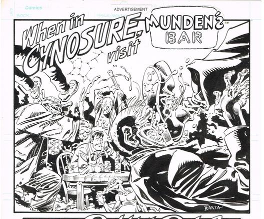 From Munden's Bar. Slurred script by John Ostrander and Del Close, liquored lettering by Steve Haynie.