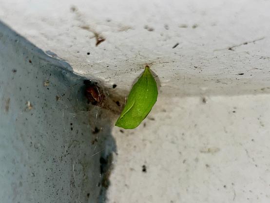 Pupa of a Speckled Wood #butterfly in a quiet corner at #WWTCastleEspie.