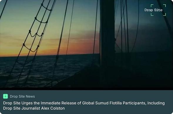 Humiliation tactics exercised on flotilla captives and silencing of journalists to witness actions reveal vicious intent of IDF. Failure of US to appeal for release of citizens captured by IDF reveal complicity with Netanyahu depravity. Officials cited government shutdown as an excuse. Flotilla was formed to overcome the blockade of food and relief supplies. Support for Drop Site appeal.
