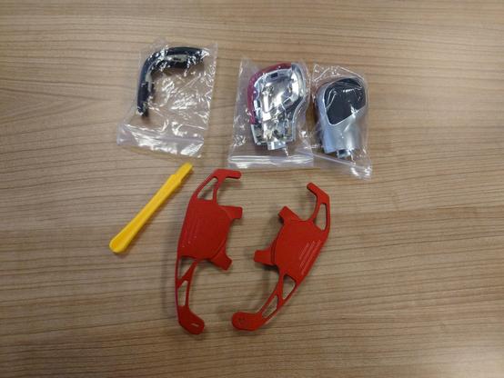 Also added red aluminium #DSG paddle shifters (replacing the stubby ones that #VW supply as stock), and selector knob with red #GTI pattern stripes. Got a thinner set of needle nose #pliers with serrated edges to yoink out plastic pins in steering wheel that hold the shifters - all the others I had were too wide by about 2mm.