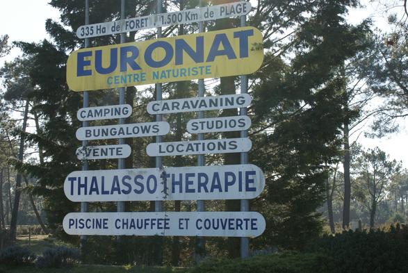L'entrée du Centre naturiste Euronat à Grayan et l’Hôpital dans le Nord Médoc en Gironde Nouvelle Aquitaine