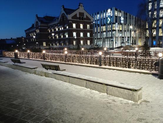 Mange flere julelys på plass, enn dagen før, ved Nydalen stasjon på t-banen, Oslo, 5. desember 2023/Far more Christmas lights than yesterday in the same spot